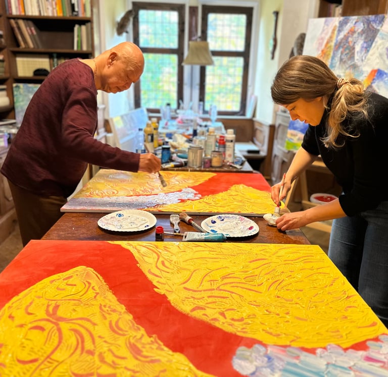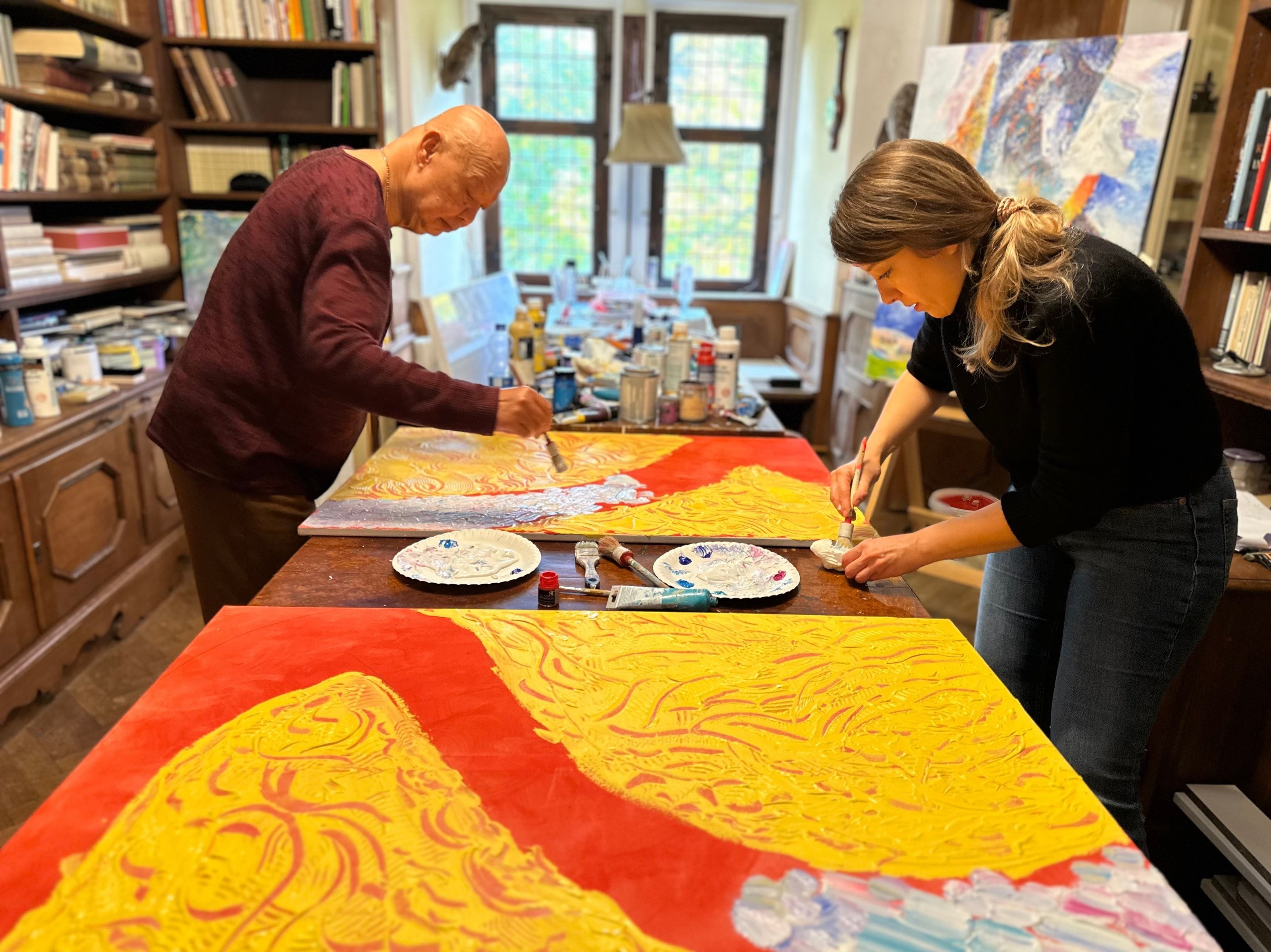 Melek Ismail und Meister Amnart Klanprachar, Atelier Schloss Dillich, 2024