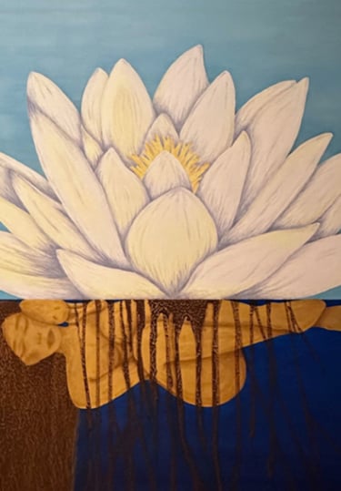 Acryl & Mokka, Goldblatt auf Canvas